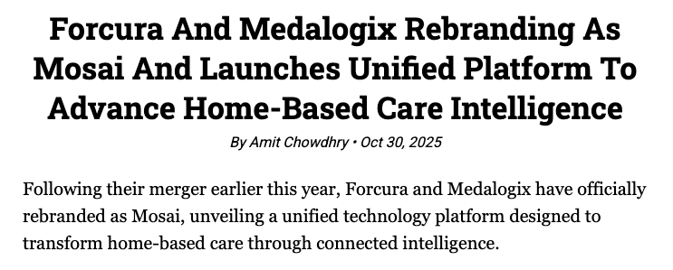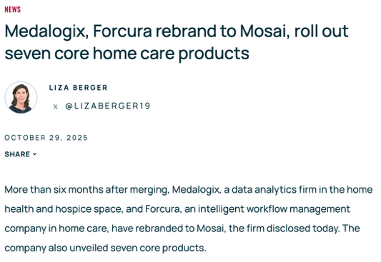 The recent merger of post-acute care tech leaders Medalogix and Forcura, who are now Mosai, illuminates a situation where a new name best answers the business strategy.